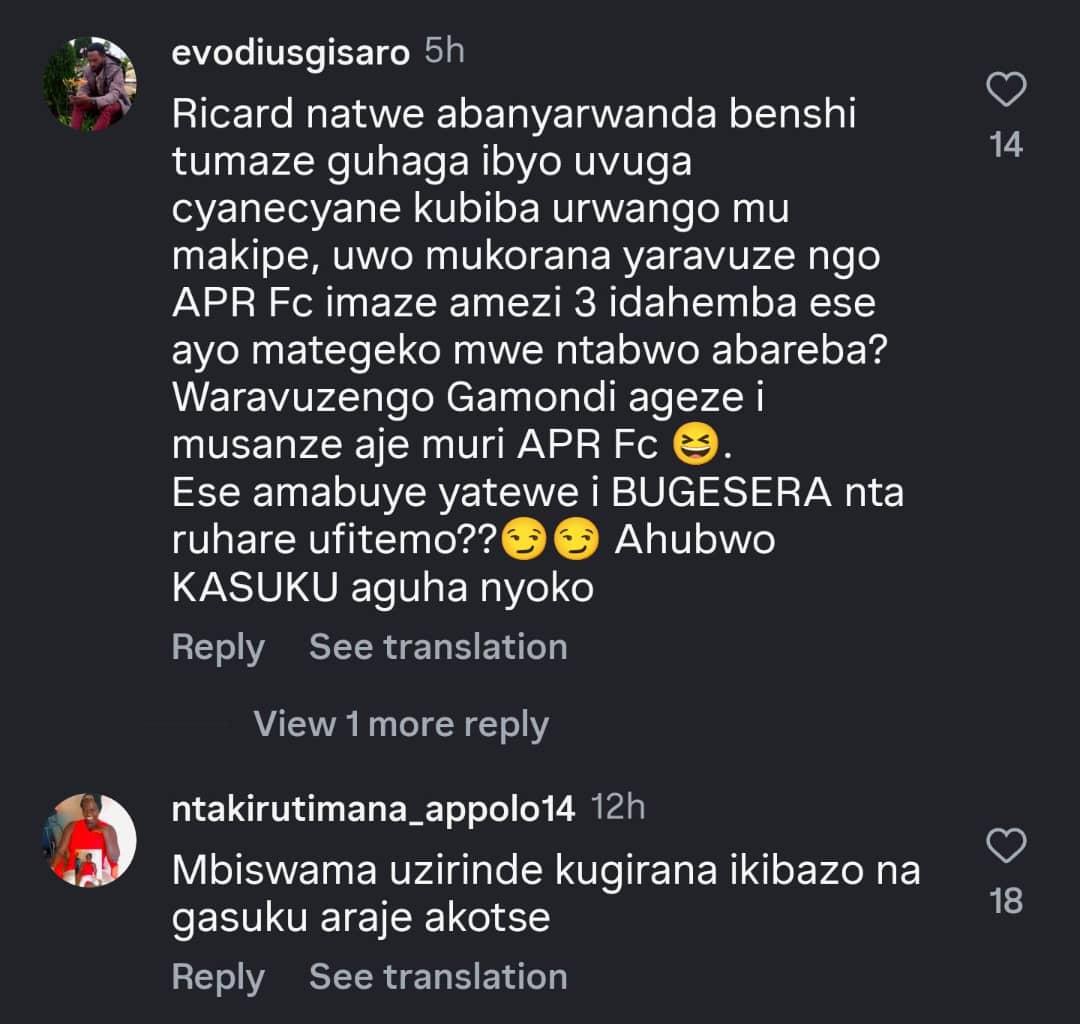 Ricard, umunyamakuru ukunze kugaragara mu biganiro byo kuganira ku makuru y’imikino, ayagize ati: “Petit Kasuku, iki gihe si cyo gutera ubwoba Umunyarwanda. Amategeko asumba amabuye kuremera. Icyo ucyeka ko uricyo ntibyatuma itegeko ritakugeraho. Ntuhubuke nagato, udakora ikosa uri umuntu nk’abandi imbere y’amategeko, Petit.”
