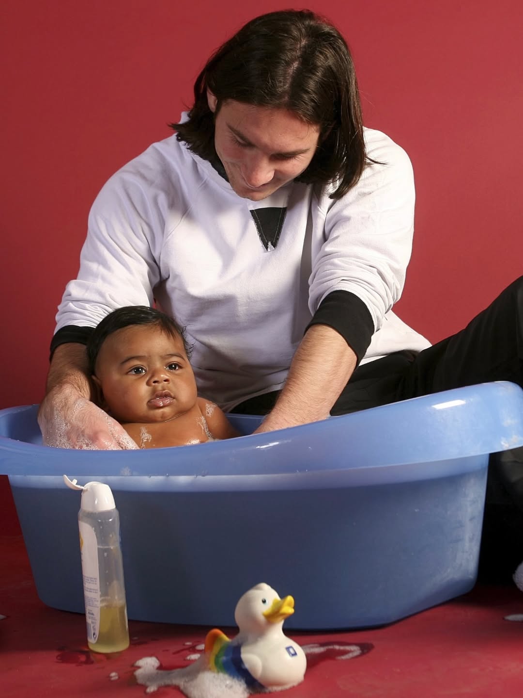 Umufotozi wa Sport, Joan Monfort, yatangaje uko byagenze agira ati: βMessi ntiyari azi neza uko afata uwo mwana mu ntoki. Leo ni umuntu utuje cyane. Yari avuye mu rwambariro, ahita asanga mu yindi harimo akabati karimo amazi maze afata nmwana wβuruhinja imbere ye, byari bigoye cyane!β