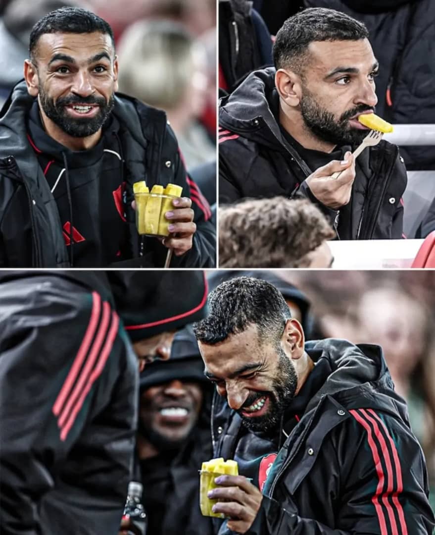 Mu mashusho yafashwe na kamera za Sky Sports, Salah yagaragaye arimo kurya inanasi n’abandi bakinnyi aasa nk’ureba umukino mu buryo bwihariye, bavuga amagambo asekeje. Ibyo byahise byinjira mu mitwe y’abafana bamwe bavuga bati: “Ese Salah arimo kurya inanasi koko mu gihe ikipe ye iri gutsindwa?”