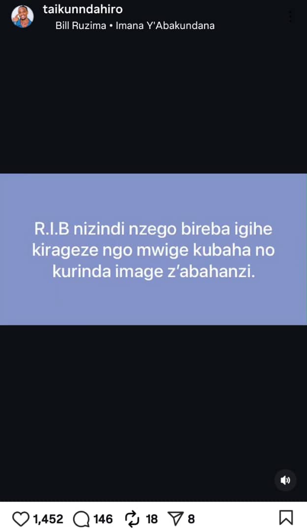 Umunyamakuru akaba n’umunyarwenya Taikun Ndahiro yongeye kuvuga ku kibazo kimaze igihe kivugisha benshi mu ruganda rw’imyidagaduro, aho yasabye Urwego rw’Igihugu rw’Ubugenzacyaha (RIB) ndetse n’izindi nzego z’umutekano n’ubuyobozi kwiga kubaha no kurinda isura y’abahanzi. Ibi yabivuze ku munsi w’ejo tariki ya 18 Ugushyingo 2025, abinyujije mu butumwa yashyize ku rukuta rwe rwa instagram, aho yavuze ko igihe kigeze ngo inzego bireba zirusheho kumva no guha agaciro umuziki n’abawukora.
