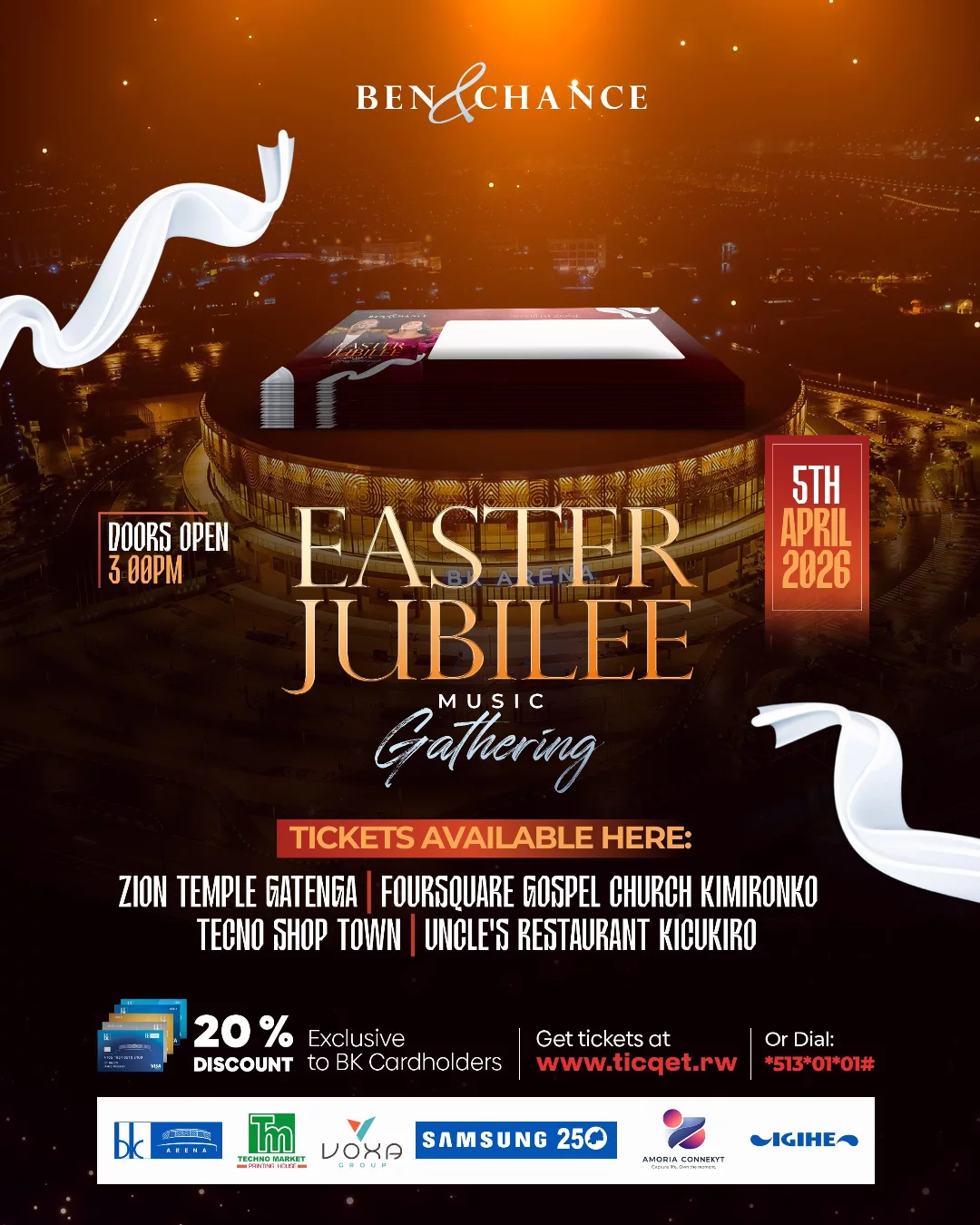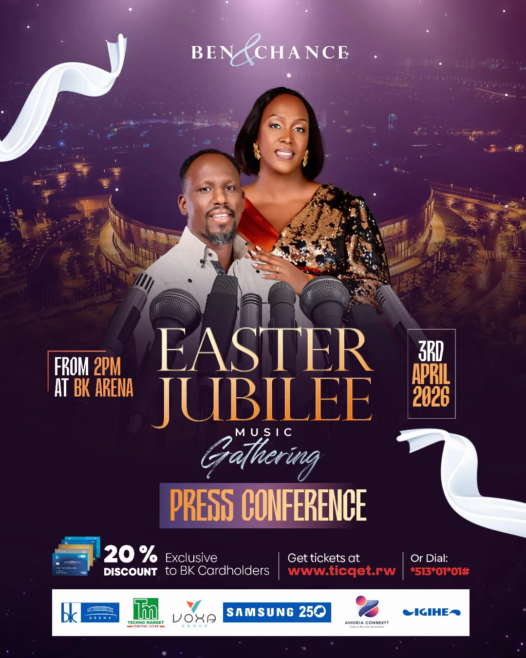 Abahanzi bakunzwe cyane mu muziki wo kuramya no guhimbaza Imana, Ben na Chance, bateguye igitaramo gikomeye cyiswe Easter Jubilee, kizabera muri BK Arena ku Cyumweru cya Pasika, tariki ya 05 Mata 2026.